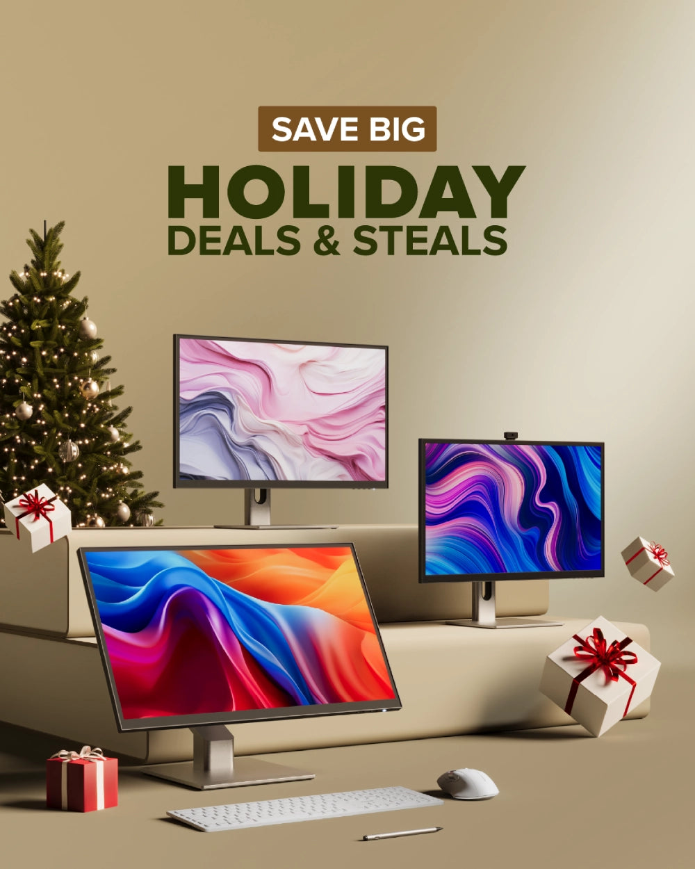 Find unbeatable Holiday deals of up to 25% on monitors from our collection of 4K, 5K, and 6K monitors—ideal for designers, professionals, and creators. Additionally, you can get free gifts with your order when you upgrade to our New Launch Monitors! Get premium add-ons that complete your workspace. Upgrade your workstation with up to 25% off risers, ergonomic monitor arms, and comfort-redefining accessories. Enhance productivity with Alogic's ergonomic and wireless keyboard and mouse combo designed for both Mac and Windows devices, and take advantage of 25% off webcams to enjoy clear, smooth video calls.
