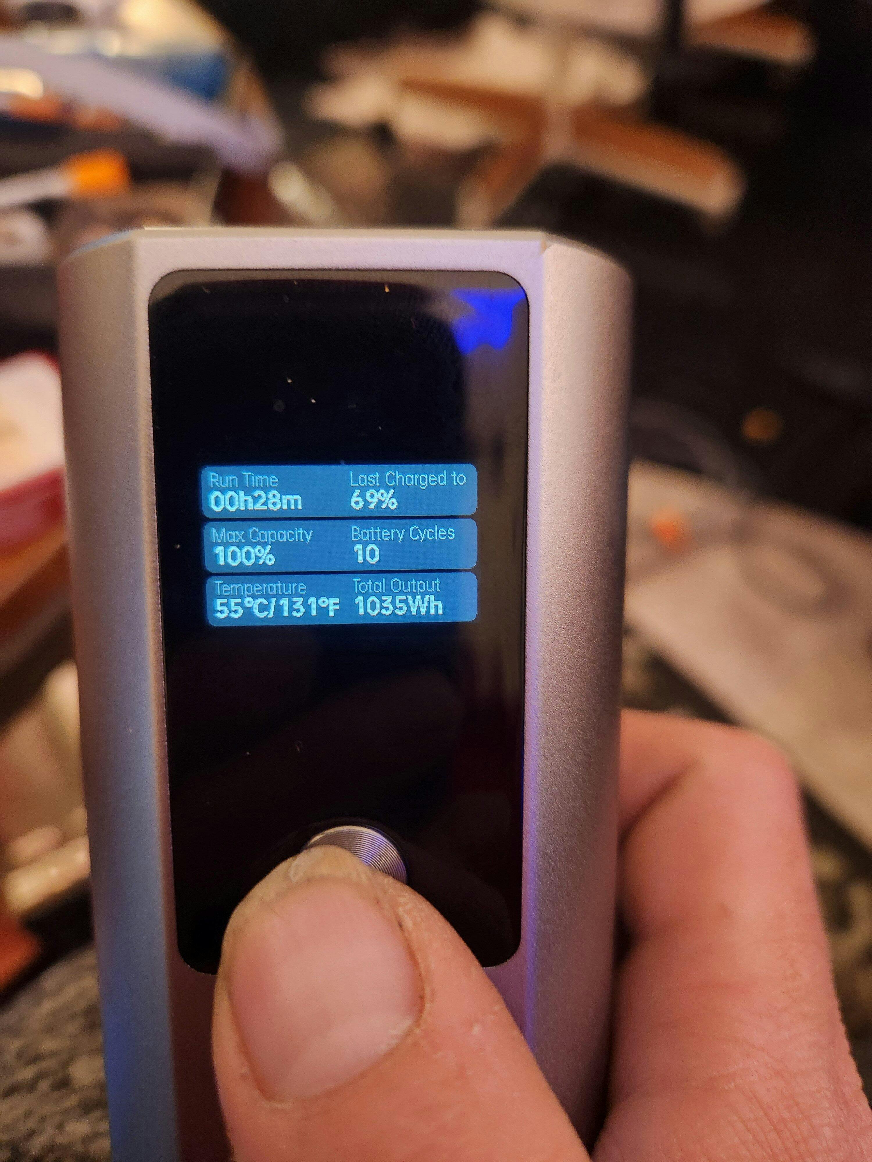 Ark Pro helps you plan ahead, with an easy to read screen that tells you key battery info, including how long it will take to recharge, how fast it's charging your devices, and the long term health & operating temperature of the battery.